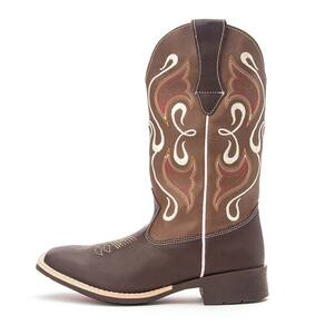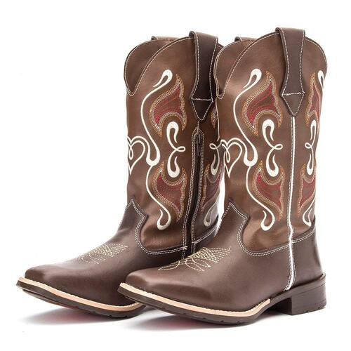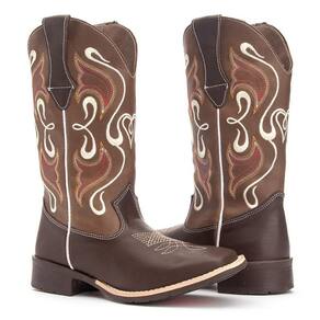 Bota Texana Feminina Country Couro Marrom Bordada Kapell - Marrom - 38