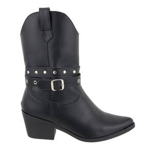 Bota Texana Feminina Salto Baixo Grosso Confortável - 35 - Preto