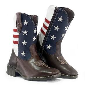 Esta bota texana é unissex, infantil, super estilosa, forrada com tecido, palmilha em EVA, solado em borracha TR, bordado no cano, feita em couro, sola reforçada com costura e um lindo cabedal com couro trabalhado. Podem ser utilizadas das mais diversas maneiras, desde a tradicional combinação com calça jeans e camisa xadrez, para formar um look na medida certa e mais moderno. TABELA DE MEDIDAS- PALMILHAS:25 - 17 cm26 - 17,5 cm 27 - 18 cm28 - 18,5 cm29 - 19 cm30 - 19,5 cm31 - 21,0 cm32 - 21,5 cm33 - 23 cm34 - 23,5 cm35 - 24 cm36 - 24,5 cm Marca: Não Informado