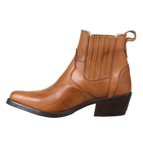 Uma Bota Masculina modelo Texana da nossa marca Cow Way, fabricada em couro de alta qualidade pintado na cor Caramelo, possui cano curto com elásticos laterais para facilitar o calce, bico fino liso, costuras laterais reforçadas e solado de borracha estilo carrapeta, assim levando maior conforto em longas distancias. Para você que precisa de um calçado tanto para a cidade quanto para o campo, esse pode confiar!