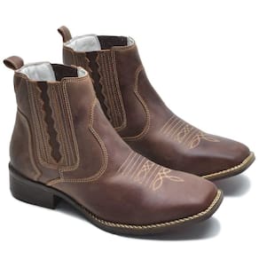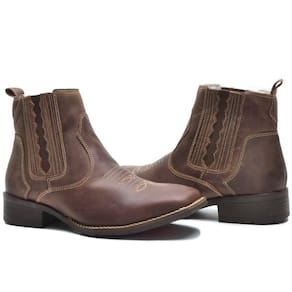 Bota Texana Masculina Couro Cano Curto Elástico Bordada - 39 - Marrom