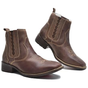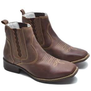 Bota Texana Masculina Couro Cano Curto Elástico Bordada - 37 - Marrom