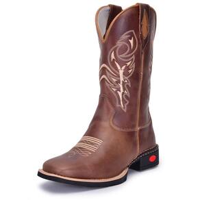 Bota Texana Masculina Couro Country Bordada Bico Quadrado - 42 - Marrom