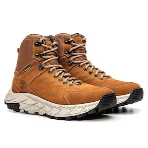 Bota Masculina Laranja Adventure Trekking Solado Tratorado Casual para Trilhas, Caminhadas, Passeios feito em Couro na Cor Camel Reforçado Moderno, Resistente, Elegante, Confortável - Modelo Edição Limitada Novo Lançamento 2023 Estiloso com Fechamento em Cadarços