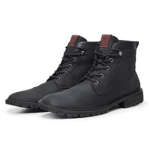 Bota Tratorada Coturno Masculina Couro Confortavel Solado Borracha Cadarço Cano Curto - 37 - Preto