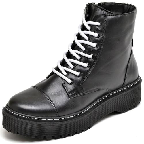 CARACTERÍSTICAS DO PRODUTO Material: Couro Fechamento: Cadarço Material Interno: Camurça Sintética Suede Palmilha: Conforto Altura do Cano: Médio Altura do Salto: Baixo Altura do Salto em Cm: 4,5 cm Solado: Borracha