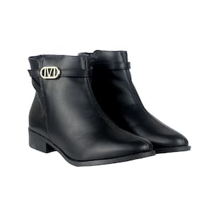 VIA UNO Sobre a marca: A Via Uno acompanha as principais tendências e lançamentos da moda mundial com o lifestyle urbano e moderno, oferecendo calçados versáteis, diversos estilos e muito conforto para a mulher contemporânea. Bota feminina confeccionada em material sintético. Possui cano curto, salto baixo grosso, fechamento por zíper lateral e bico quadrado.