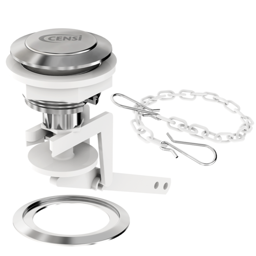 O Botão de Acionamento Superior 2 em 1 é indicado para todos os modelos de caixa acoplada com acionamento superior, tendo como medidas de aplicação de 38mm a 46mm. Acompanha corrente plástica.