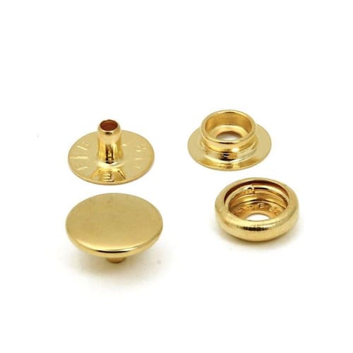 Botão de Pressão FN 1002/80 Dourado - 1000 UnidadesBotão de pressão é utilizado com a finalidade de fechar um sistema de encaixe por pressão. Aplicado em diversas áreas, este botão de pressão está presente em bolsas, mochilas, peças esportivas, tecidos médios ou pesados e também pode ser utilizado em capas de carros, barcos e entre outros, auxiliando na proteção. DADOS TÉCNICOS:Quantidade: 1000 UnidadesDiâmetro superior: 13 mmMatriz para este botão - Matriz de pressão /80 ( Produtos com material base em ferro podem apresentar oxidação de acordo com o tipo de aplicação )Composição: 100% Ferro