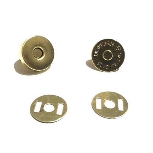 Botão Imã 18 mm para Bolsas Dourado - Kit com 25 UnidadesBotão imã para bolsas, carteiras, mochilas e entre outras aplicações.OBS: O botão imã simples não tem matriz por conta das " perninhas " que o produto apresenta para fixar diretamente no tecido.DADOS TÉCNICOS:Quantidade: 25 UnidadesDiâmetro: 18 mmComposição: 100% Ferro Marca: Loja Malu