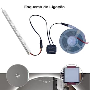 Botão touch 12v, 3a, 36w, dimmer, de espelho Dimmer 12v, 3a, 36w, botão touch, para espelho, sensor de toque liga/desliga para fita de led com uma cor de luz, adequado para uso em espelhos de vidros de banheiros em ambientes residenciais e comerciais. Especificações: - tipo de sensor: sensor de toque liga/desliga - botão para fita de 1 uma cor de luz - tipo de item: para espelho de vidro - material: componentes eletrônicos - tamanho do botão touch: largura: 40mm x altura: 33mm x espessura: 7mm - cor do produto: preto - tensão: 12v 3a - potência: 36w - faixa de detecção: 3mm - entrada para fita: possui 1 uma entrada para fita de led Instruções e recomendações de uso: - para melhor segurança no projeto procure um especialista no assunto para que planeje de forma correta a instalação. - para controlar a intensidade da luz é somente pressionar o botão até o brilho aumentar ou diminuir. - quando o botão touch estiver ligado terá uma luz de cor azul de fundo, quando o botão for desligado terá uma luz de cor branca de fundo. Tipos de conectores do botão touch: - o conector para entrada da fonte é plug p4 fêmea - o conector para entrada da fita de led é plug p4 macho - atenção: a fita não deverá ser ligada diretamente na energia elétrica 110/220v sem uma fonte de 12v 3a para não danificar o produto - não acompanha fita de led Itens inclusos : - 1 para espelho, sensor de toque 12v 3a 36w Marca: Não Informado