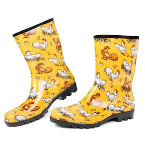 DKSUKO Botas de chuva femininas impermeáveis isoladas, de borracha, leves, modernas, para jardinagem, botas de chuva largas quentes e confortáveis com brilho ao ar livre, Galinha amarela, 39