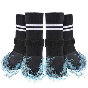 - Meias impermeáveis para cães: as meias para cães são feitas de tecido de algodão macio e aconchegante, usando as meias, os pés do seu cão são instantaneamente envolvidos em calor. O material do piso torna as meias à prova d'água e mantém os pés secos, perfeitas para todas as estações em ambientes internos ou para curtos períodos de exercício ao ar livre
