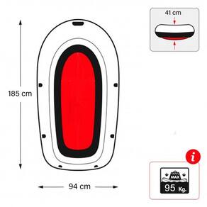 - Confeccionado com PVC Pneumático de alta resistência. - Duas Câmaras De Ar Com Válvulas Duplas. - Válvula com película para retenção do ar estampada com tinta não tóxica. - Possui válvula de segurança e válvula de esvaziamento. - Capacidade máxima recomendada: 95kg. - Dimensões: 185 X 94 X 41 cm