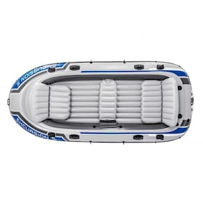 Bote inflável Excursion 5 para 4 ou 5 pessoas, com capacidade para 600kg. Suporta motor de até 1.5 Hp. Fabricado em vinil Super-Touch que garante maior resistência e durabilidade, excelente para ser usar em praias, lagos, represas e rios. Acompanha bomba de ar manual e par de remos para seu uso. É de fácil transporte e pode ser guardado no porta mala do seu carro quando não esta inflado. Possui 3 câmaras de ar e vem com bolsa interna para guardar objetos, conta com 3 assentos infláveis removíveis para maior conforto.