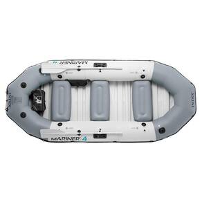 O Bote Inflável Mariner 4 Intex é um bote profissional que aceita motorização de até 3hp, instalado com suporte (vendido separadamente). Suporta até 500kg. Possui quilha central, suporte para remos giratórios (já incluídos) e acentos removíveis.