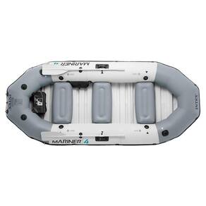 O Bote Inflável Mariner 4 Intex é um bote profissional que aceita motorização de até 3hp, instalado com suporte (vendido separadamente). Suporta até 500kg. Possui quilha central, suporte para remos giratórios (já incluídos) e acentos removíveis.