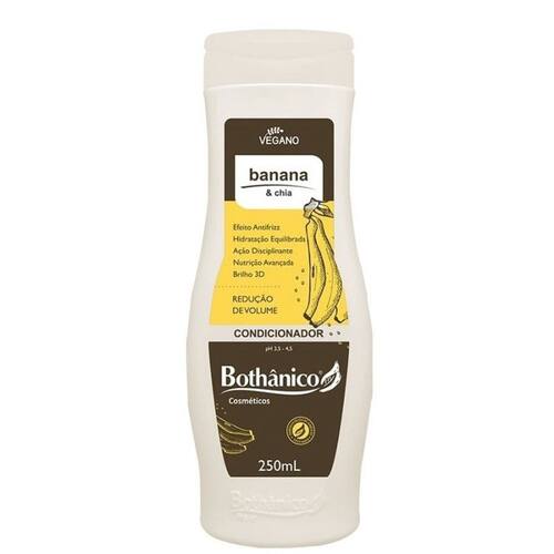 Condicionador Banana E Chia 250ml - Bothânico Hair A Bothânico Cosméticos Desenvolveu a Linha Banana amp; Chia Vegana, buscando na natureza uma associação imbatível para cuidar dos fios desidratados e indisciplinados. Uma nutritiva combinação entre o extrato obtido da Banana, que é riquíssimo em minerais e vitaminas e a fração da semente de Chia, potente em polissacarídeos com alta capacidade de retenção de água e formação de filme, auxiliando na redução do frizz e do volume.