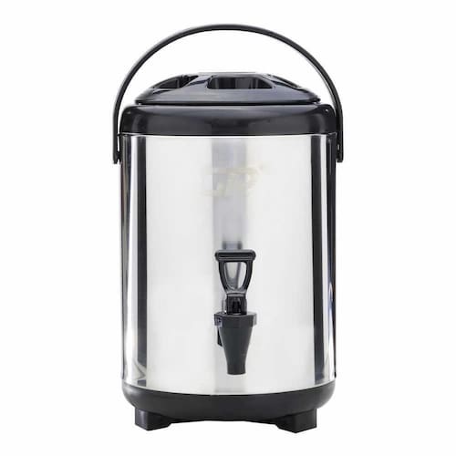 - Composição: Corpo em aço inox 201 e interno alumínio; - Alça para ; - Pés retráteis; - Capacidade de 8 litros.