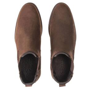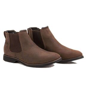 Botina Chelsea de Couro Masculina Sola Borracha Confortavel Para Trabalho Dia a Dia Bico Redondo - 44 - Marrom