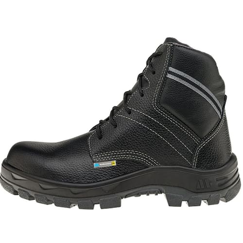 Especificações técnicas -Material do cabedal: couro sem componentes metálicos -Biqueira: composite leve, antimagnética e anticorrosiva -Solado: PU bidensidade com absorção de impacto e isolamento elétrico -Palmilha: montagem em poliéster resinado -Sistema antitorção: cano de 160 mm para suporte ao tornozelo -Fechamento: cadarço até o último ilhós para melhor estabilidade