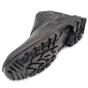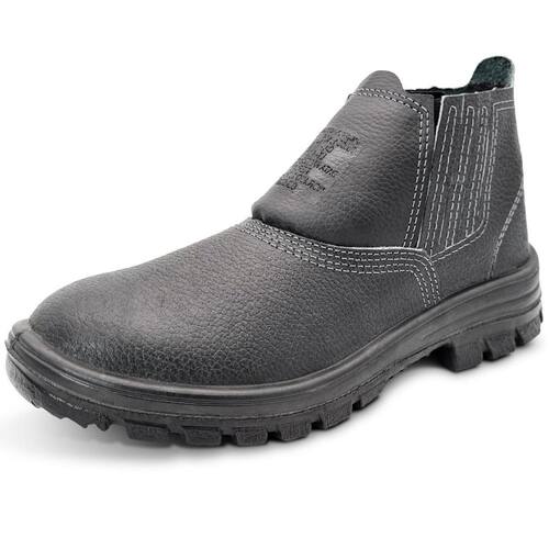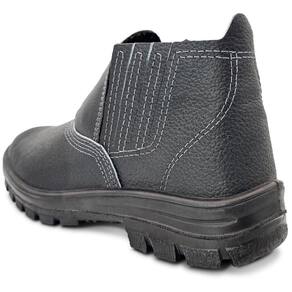 diretamente no cabedal,com estabilizador, sistema antipronação, canais de escoamentos mais espaçados, ranhuras de aderência na região frontal e traseira e desenho plantar rebaixado. O modelo é ideal para trabalhos na área de construção civil, na industria, na petrolífera e serviços em geral, sendo confortável e protegendo contra riscos de impacto de natureza leve.