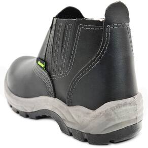 diretamente no cabedal, sendo a 1° camada (entressola) mais macia e leve proporcionando maior conforto, a 2° camada é a mais resistente a objetos cortantes, perfurantes e a abrasão. O solado com estabilizador possui sistema antipronação, canais de escoamentos mais espaçados, ranhuras de aderência na região frontal e traseira e desenho plantar rebaixado. O modelo é ideal para trabalhos na área de construção civil, na industria, na petrolífera e serviços em geral, sendo confortável e protegendo contra riscos de impacto de natureza leve.