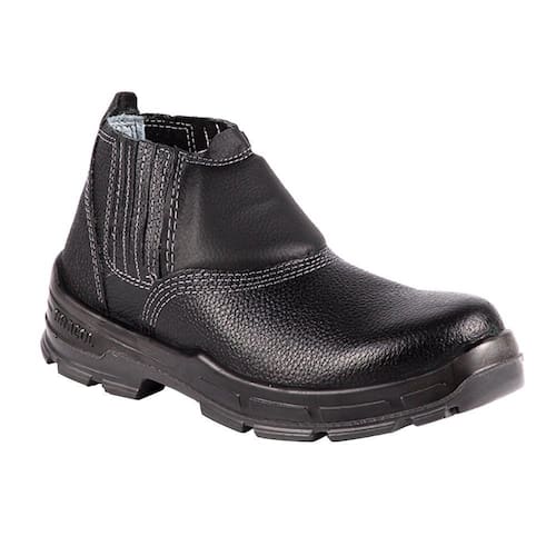 Características Adicionais: Botina de segurança com elástico lateral recoberto, com colarinho acolchoado Confeccionado em couro estampa relax. Forração interna da gáspea em não tecido e forro do ano em tecido com alto poder de absoção. Biqueira de aço, palmilha de não tecido e sobre-palmilha de eva. Solado em poliuretano (pu) bidensidade, constituído por duas camadas, injetado diretamente ao cabedal. Calçado que proporciona conforto.