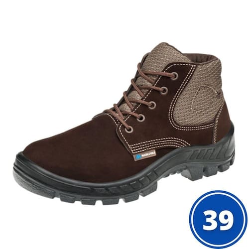 BOTINA DE SEGURANÇA NUBUCK BIDENSIDADE EM COR MARROM CAFÉ COM BIQUEIRA DE PLÁSTICO - Nº39 - MARLUVABotina de segurança confeccionada em couro nubuck hidrofugado, indicada para áreas administrativas, aventuras, mecânicas, montadoras, motoboys e prestadoras de serviços. Este calçado tem estrutura fibrosa e microporosa, que ajuda a manter a temperatura dos pés, colarinho e lingueta soft acolchoados. Ele apresenta fechamento em cadarço, solado isolante em PU bidensidade, injetado diretamente no cabedal, e palmilha de montagem em poliéster resinado.- Ideal para áreas administrativas, aventuras, mecânicas, montadoras, motoboys e prestadoras de serviços.- Tem estrutura fibrosa e microporosa, que ajuda a manter a temperatura dos pés.- Fechamento em cadarço.- Palmilha de montagem em poliéster resinado.- Solado isolante em PU bidensidade, com sistema de absorção de impacto, injetado diretamente no cabedal.CALÇADO DE SEGURANCATAMANHO: 39TIPO: BOTINAMATERIAL: COURO NOBUCKFECHAMENTO: CADARCOSOLADO: POLIURETANO BIDENSIDADEBIQUEIRA: PLÁSTICOCOR: MARROM CAFÉ***SELECIONAR CORRETAMENTE A NUMERAÇÃO POIS NÃO É POSIVEL ALTERAÇÃO POS COMPRA ****IMAGEM MERAMENTE ILUSTRATIVA*MARCA: MARLUVASCODIGO: 77651