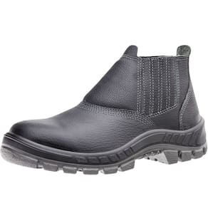 Especificações técnicas -Material do cabedal: couro vaqueta preto -Fechamento: elástico lateral para ajuste rápido -Biqueira: aço ultrarresistente contra impactos -Palmilha: aço com montagem em poliéster resinado -Solado: PU bidensidade injetado direto no cabedal, isolante e antiderrapante -Forração interna: tecido com tratamento antibacteriano
