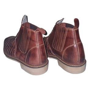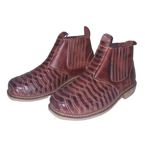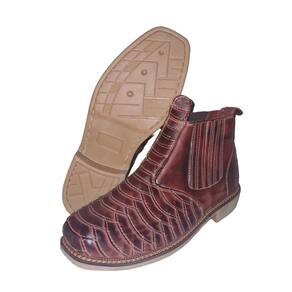 Botina Em Couro Escama de Peixe Masculina Ajuste Elastico Lateral Resistente Solado Borracha - 42 - Vinho