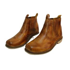 Botina Em Couro Masculina Bordada Bico Quadrado Costura Manual Elastico Lateral Rodeio Peão - 40 - Marrom Cacau