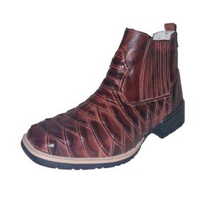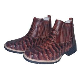 Botina Escama de Peixe Em Couro Masculina Elastico Lateral Resistente Solado Borracha - 42 - Vinho