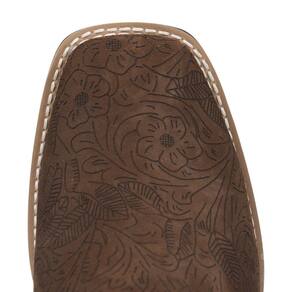 Uma Botina Feminina da marca Zebu, fabricada em couro de alta qualidade destacando a textura única do couro entalhado, possui cano curto com elástico lateral acolchoado no interior, bico quadrado, vira costurada e solado de borracha tratorado.