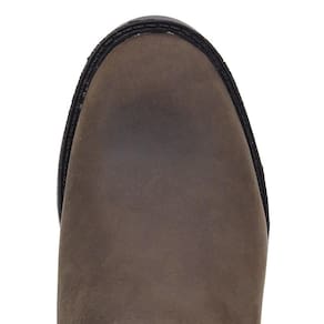 Botina feminina Zebu fabricada em couro na cor Marrom, possui cano curto com elásticos laterais, bico redondo e solado de borracha