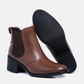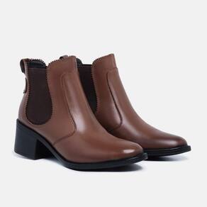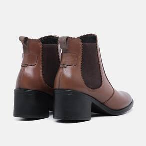Esta bota feminina é uma Chelsea boot clássica, confeccionada em couro de alta qualidade. O modelo possui elásticos laterais, típicos desse estilo de bota, que facilitam o calce e oferecem um ajuste confortável. O cano é curto, alcançando a altura do tornozelo, ideal para compor looks tanto no inverno quanto em dias mais amenos. O salto médio e grosso, com aproximadamente 5 cm, proporciona estabilidade ao caminhar, mantendo a elegância e o conforto. A alça na parte traseira ajuda a facilitar o processo de calçar a bota. Além disso, o solado em borracha antiderrapante confere segurança em diferentes tipos de superfícies.