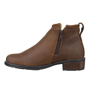 Uma Botina Feminina da marca Zebu, esta fabricada em couro de alta qualidade na cor Marrom, possui cano curto com zíperes laterais para facilitar o calce, bico redondo e solado de borracha.