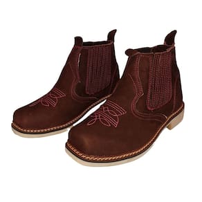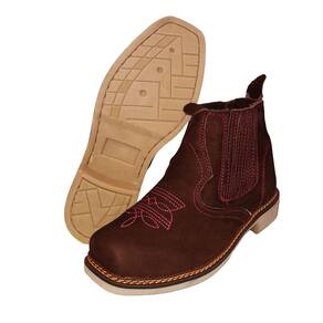 Botina Feminina Couro Nobuck Bordada Bico Quadrado Costura Manual Elastico Lateral Vaquejada - 34 - Marrom
