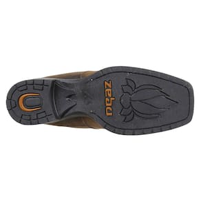 Uma Botina Feminina da marca Zebu, fabricada em couro de alta qualidade destacando a textura única do couro, possui cano curto com elástico lateral acolchoado no interior, bico quadrado, vira costurada e solado de borracha tratorado.