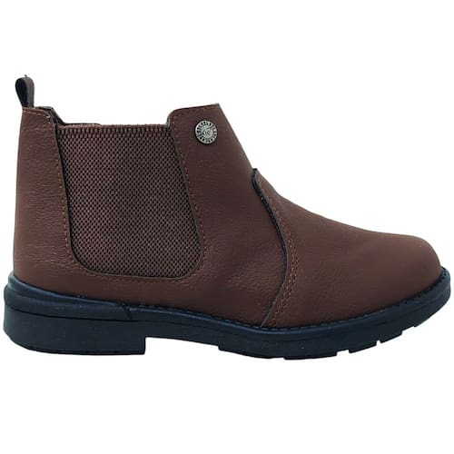 A botina infantil estilo Chelsea é confeccionada em material sintético resistente, com acabamento liso que transmite um visual moderno e versátil. O design cano curto conta com um detalhe em elástico lateral em mesh, proporcionando um ajuste confortável e flexível. O fechamento em zíper na lateral facilita o calce, oferecendo praticidade para o dia a dia. O interior é forrado em tecido macio, garantindo conforto durante o uso, enquanto o solado em borracha antiderrapante assegura maior segurança ao caminhar. A peça possui um detalhe em metal com a logomarca na lateral externa, acrescentando um toque de personalidade ao modelo.