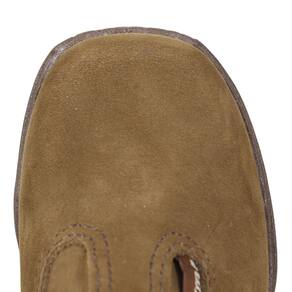 Botina Infantil da marca Palma, fabricada em couro de alta qualidade na cor Marrom, possui cano curto com elásticos laterais para perfeito e confortável calce, bico redondo, já sendo um padrão em calçados infantis, a peça é colada no solado de borracha.