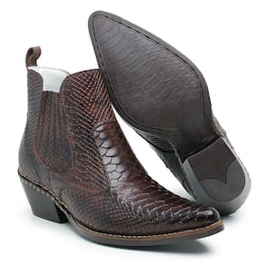 Botina Masculina Bico Fino Anaconda Country JNA SHOES Cobra Café - 42 - Marrom Chocolate