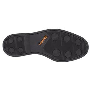 Botina masculina Zebu fabricada em couro na cor Preta, possui cano curto com zíperes laterais, bico redondo, vira costurada e solado de borracha.