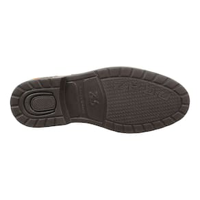 Uma Botina modelo Masculino da marca Zebu, esta fabricada em couro na cor Pinhão, possui cano curto com elásticos laterais, bico redondo, vira colada e solado de borracha detalhado.