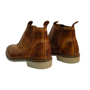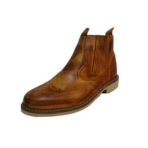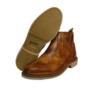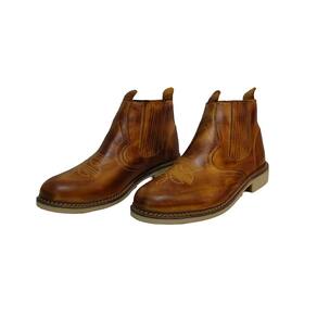 Botina Masculina Couro Bordada Bico Redondo Costura Manual Ajuste Elastico Lateral Confortavel - 42 - Marrom Cacau