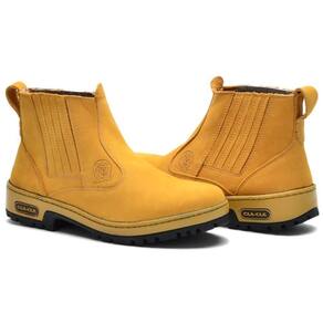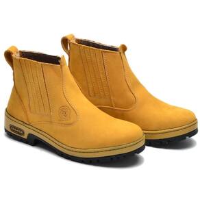Botina Masculina Couro Lisa Bota Chelsea Trabalho Cano Curto - 36 - Amarelo