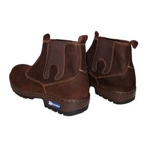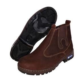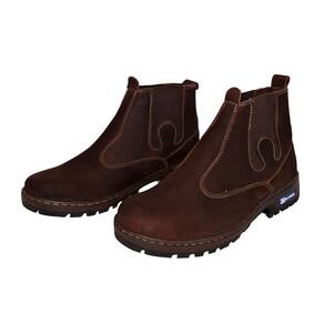Botina Masculina Couro Nobuck Lisa Bico Redondo Costura Manual Elastico Lateral Vaquejada - 35 - Marrom