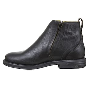 Uma Botina modelo Masculino da marca Zebu, fabricada em couro de alta qualidade na cor Preto, possui cano curto com zíperes laterais para facilitar o calce, bico redondo, vira colada e solado de borracha detalhado garantindo conforto e resistência.