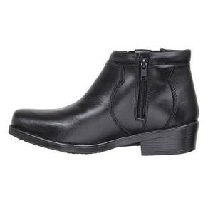 Botina masculina Zebu fabricada em couro na cor Preta, possui cano curto com zíperes laterais, bico quadrado, costuras reforçadas e solado de borracha.