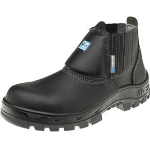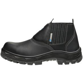 Botina de segurança confeccionada em microfibra na cor preta, com proteção elétrica e mecânica. Ideal para profissionais que atuam em áreas como construção civil, mecânica e manutenção industrial, oferece proteção contra choques em instalações elétricas de baixa tensão. Sem componentes metálicos, atende à NR 10. Possui fechamento em elástico, dorso acolchoado, abas laterais para calce, forração interna com tratamento antibacteriano, biqueira de composite leve e ultrarresistente, solado isolante em PU bidensidade, injetado diretamente no cabedal, e palmilha de montagem em poliéster resinado.